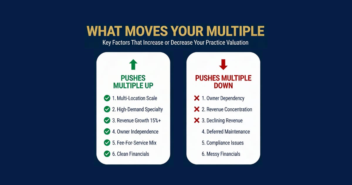 Revenue growth: A practice growing 15% year-over-year gets a better multiple than a flat one. Buyers are paying for the future, not just today.